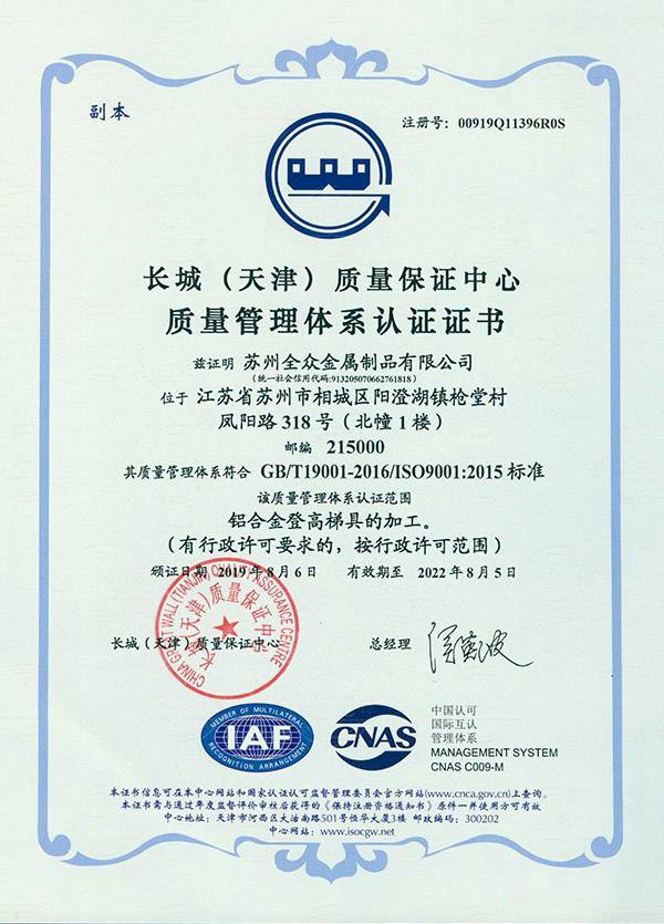 AG九游会·(官方网站)-首页成立于2013年3月,注册资本500万元,是一家从事铝合金登高工具生产及销售的企业,AG九游会·(官方网站)-首页坐落于“人间天堂”苏州市,毗邻阳澄湖度假区,交通十分便利。在铝合金产品加工有着很深厚的底蕴和丰富的经验。同时是铝合金登高产品解决方案的供应商。公司通过ISO9001质量管理体系认证,将公司发展的步伐向前迈进一步。